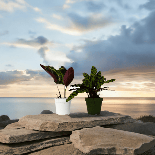 Paquete variado de 2 plantas de Calathea en macetas de 4"