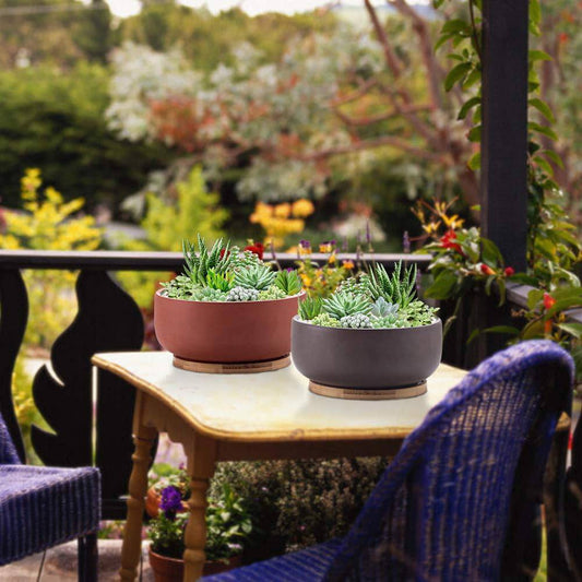 EPFamily Fioriera bassa per piante grasse in terracotta, fioriera da 8 pollici con vassoio in bambù, fioriera in argilla per interni ed esterni con foro di drenaggio, marrone…
