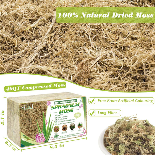 Halatool 2,2LBS Muschio di sfagno naturale per piante 40 QT Muschio di torba premium Muschio di orchidea a fibra lunga essiccato per rinvaso di orchidee Piante grasse carnivore Fiori da giardino Artigianato Terrari e rettili