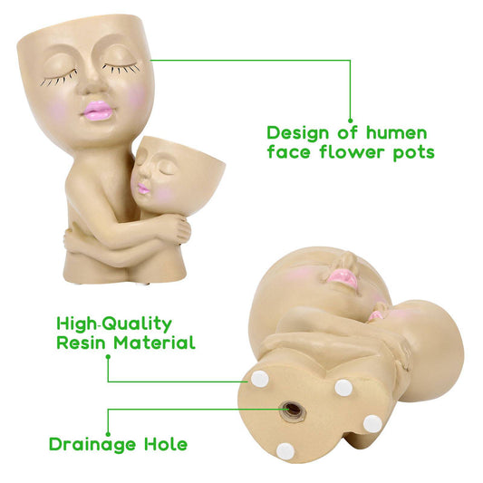 DAMEING Fioriere per il viso Vasi Testa, Vasi da fiori regalo per la mamma per piante da interno ed esterno, Fioriera per viso succulente in resina con foro di drenaggio, Simpatico vaso per viso a doppia testa in uno - Regalo per la mamma